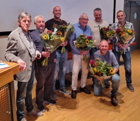 Een bijzonder moment volgde toen de voorzitter aandacht vroeg voor Bas Reijerkerk. Vanaf het eerste uur is Bas een steunpilaar van de Dutch Golden Classic. Jarenlang heeft hij zich ingezet, altijd met enthousiasme en betrokkenheid. Omdat de gezondheid hem parten speelt, neemt hij afscheid van zijn actieve bestuursfunctie. Met een grote bos bloemen, een warm applaus en veel dankwoorden werd Bas in het zonnetje gezet. Een verdiend eerbetoon aan een man die zoveel voor de DGC heeft betekend.